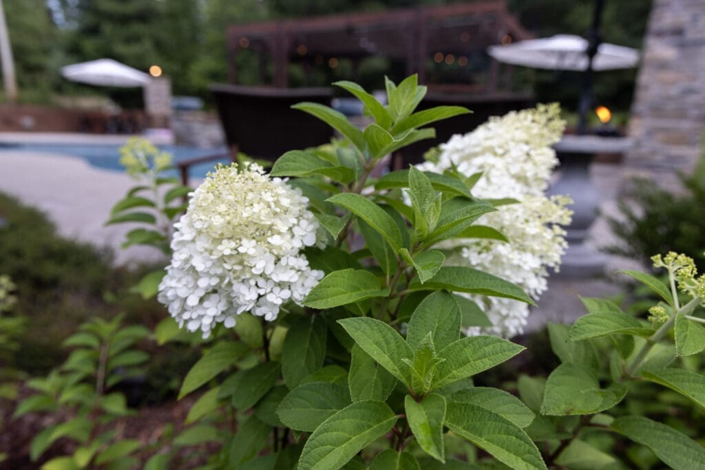 For a splash of color and a bit of variety, Little Quick Fire Hydrangeas are an excellent choice. These compact shrubs bloom earlier than other hydrangeas, with flowers that transition from white to pinkish-red as the season progresses. They thrive in full sun to partial shade and well-drained soil. Their manageable size makes them perfect for framing a pool or creating a colorful border.