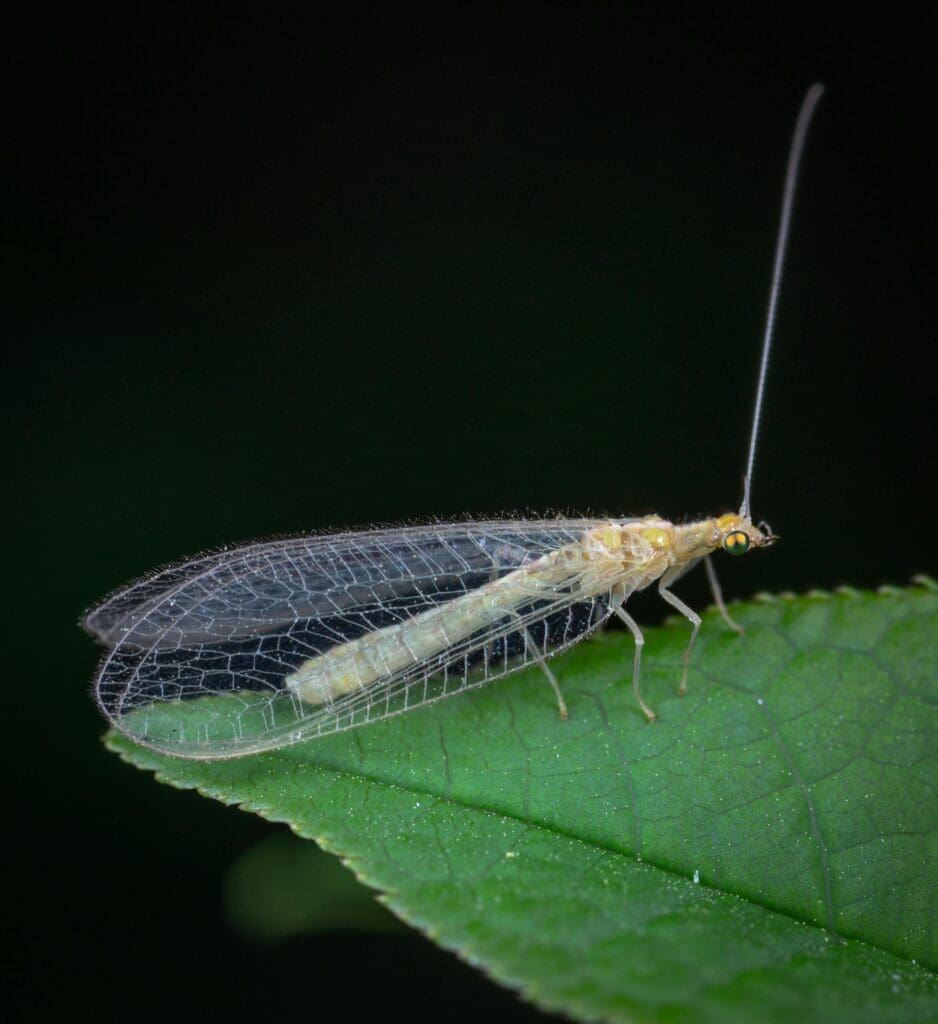 Another benefit is the sustainability aspect – lacewings are not wild-caught. Lacewings are farmed in controlled environments, so they don’t have parasites or diseases. They’re easy to purchase online, and you can know that they were not wild-harvested and sustainably raised. Plus, once the larvae enter into adulthood, they are no longer predators – they become pollinators. They fly from flower to flower, pollinating as they go. They drink honeydew produced by aphids and then lay eggs near the aphids so their offspring will have food to eat once they’re born.