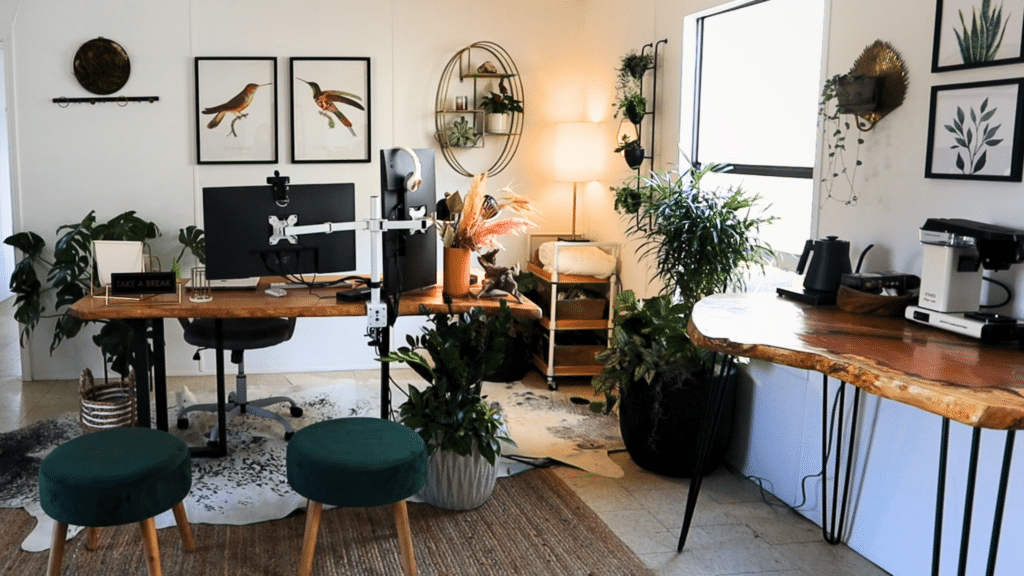 If you’re a lover of lush greenery, why not turn a corner of your home into a mini indoor jungle? Choose a variety of plants with varying textures and shades of green to mimic the feel of a jungle. Large-leafed plants like Monstera and Fiddle-Leaf Fig can be great additions to this setup.