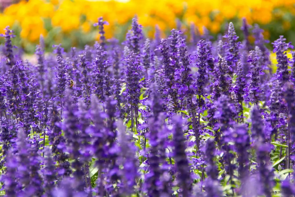 (Salvia spp.): These upright plants also have spikes of tubular flowers, usually in red or blue shade variations. Some are perennials; some are biennials usually grown as annuals, which can reseed in the right conditions. Most grow and bloom best in full sun, but can tolerate a bit of shade, as well.