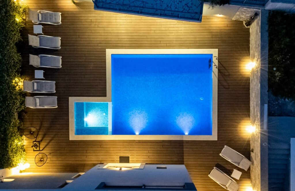 If you’re fortunate enough to have a water feature, such as a pond or a pool, make it the star of your outdoor oasis by incorporating underwater lighting. Install submersible LED lights to create a stunning visual effect, illuminating the water with a soft, ethereal glow. You can also add floating LED orbs or water-resistant LED strips around the perimeter of the feature to enhance the overall effect.