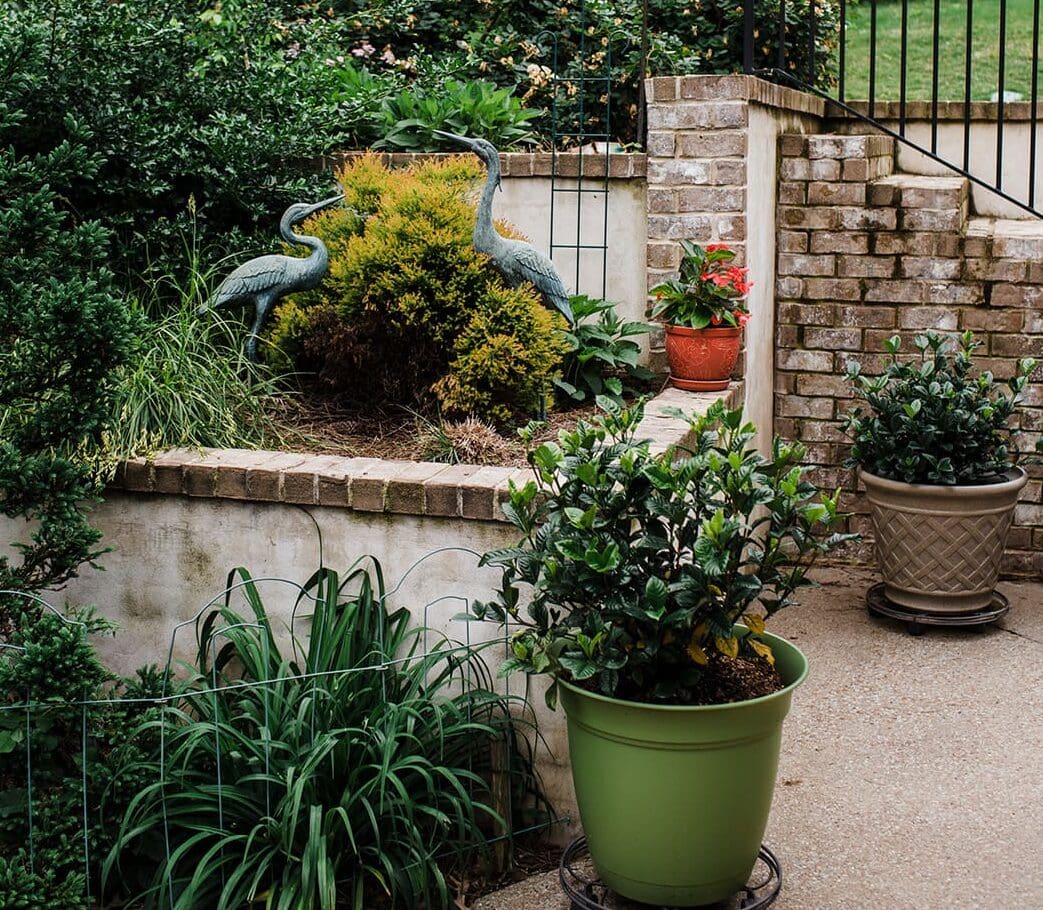 If you have more space – like on a larger patio or even front door steps and walkways – you can pot small trees and place them around your space to add depth and drama. If you pick a hardier variety, you may not have to worry about them as much as other plants in the fickle Tennessee weather.