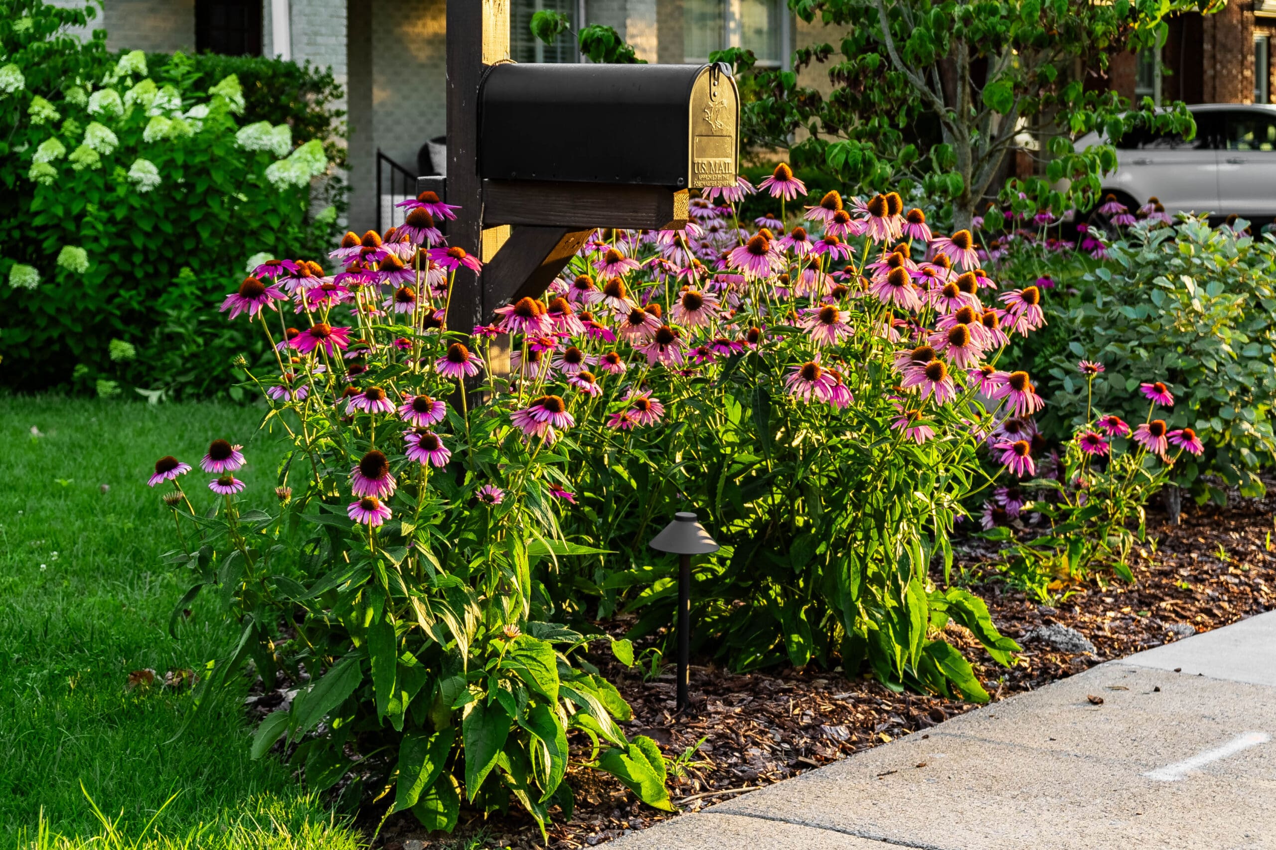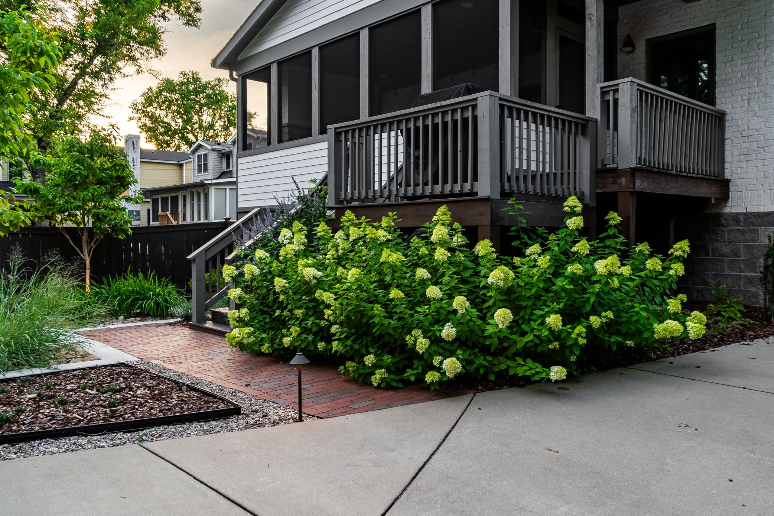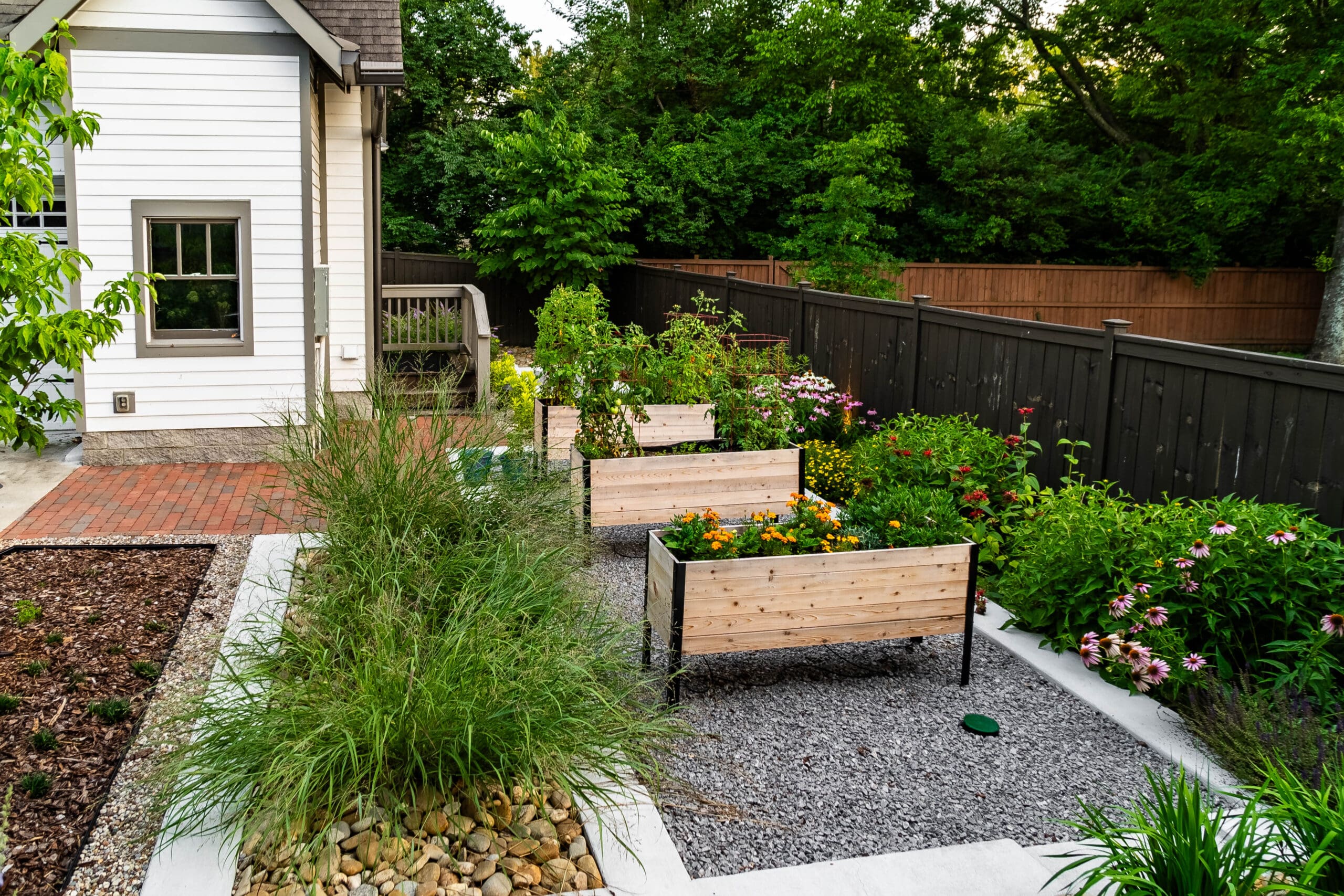 A steep slope caused stormwater to flood the backyard, making the space unusable. The homeowners also wanted raised beds, native plantings, and seasonal color to make the yard both functional and inviting.